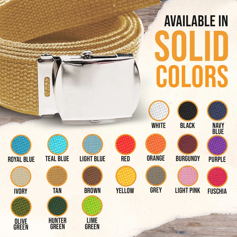 Hold’Em Military Canvas Webbing Belts for MEN’S–Polished Silver Slider Buckle...