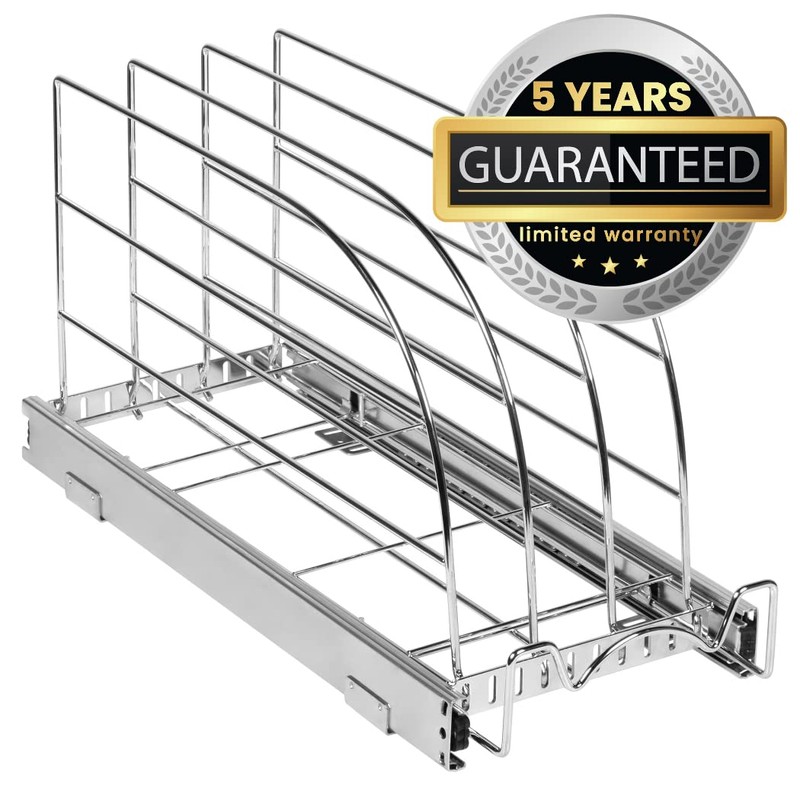- 100% SATISFACTION GUARANTEE: Finding the perfect cabinet pull out shelves to declutter and organize your cookie sheets, baking pans, cupcake trays and cutting boards can seem like an overwhelming task. That's why we are here with our pull out cabinet organizer! If for whatever reason that you are less than satisfied, we offer a 100% money back satisfaction guarantee. It's that simple