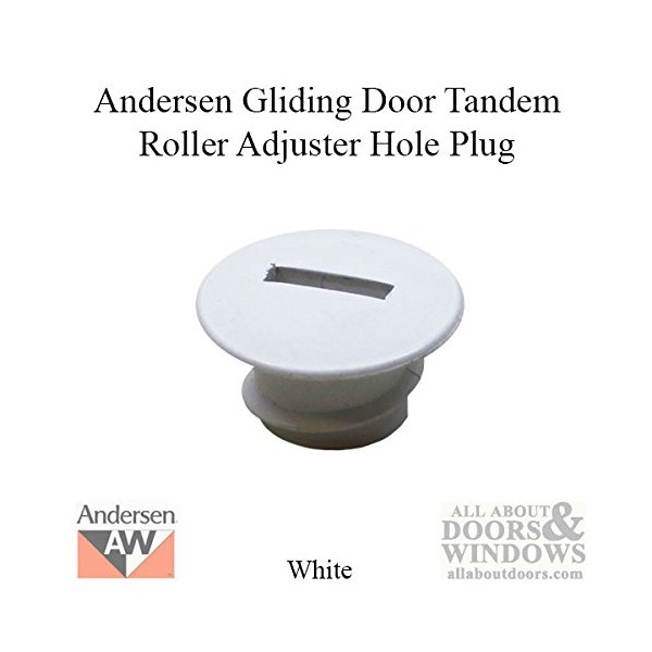 Hole Plug, Andersen PSII Gliding Doors - Tandem Roller Adjuster - White Andersen Primed Wood Gliding Patio Door tandem roller adjuster hole plug. This plug snaps into the center hole where the roller adjuster mechanism is located. This part fits into part number 1273704 tandem roller.Andersen Plastic Hole Plug, Andersen Operating \ Roller Adjustment - White This part is for the all wood construction primed gliding patio doors manufactured from 1964 to 1983.