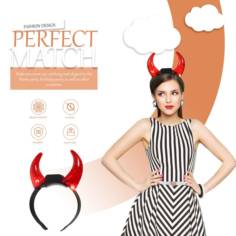 This is a creative glowing devil horn hairband for the party. Made of of material, durable and comfortable. The unique appearance design makes it more attractive. Can be used for a variety of clothing style. The hairband set meets a variety of needs. Convenient and easy to wear.