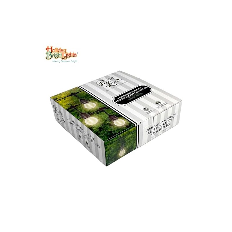 Holiday Bright Lights G50 Indoor/Outdoor Patio Bulbs Single Filament, Warm White, 25 Per Box