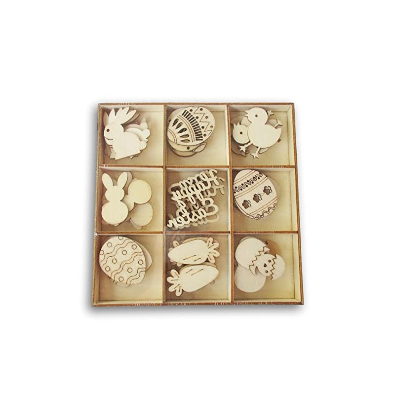 Holiday Decor Mini Laser Cuts Wood Shape - Easter Icons - 60 Pieces - 1.5'' A...