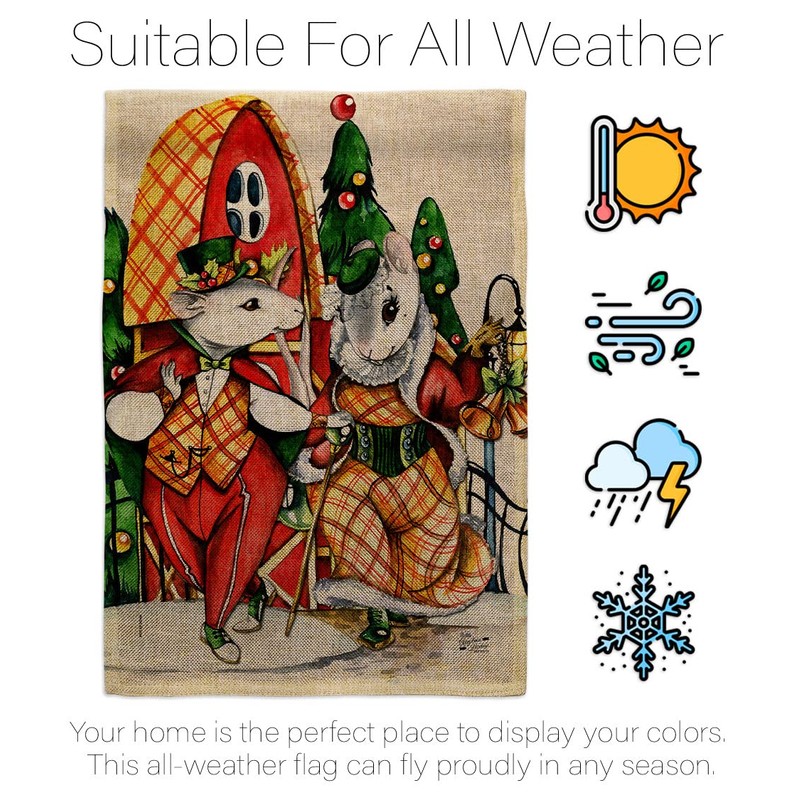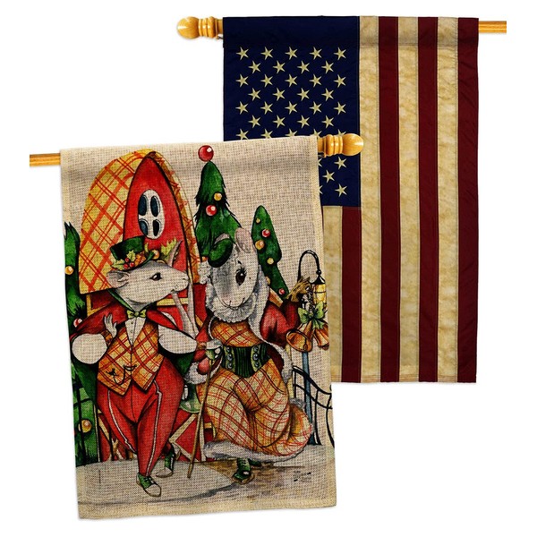 Holiday Mouses Burlap House Flag - Pack Winter Christmas Santa Marry Xmas Present Reindeer Season Wintertime Snow USA Vintage Applique - Banner Small Garden Yard Gift Double-Sided Made in 28 X 40