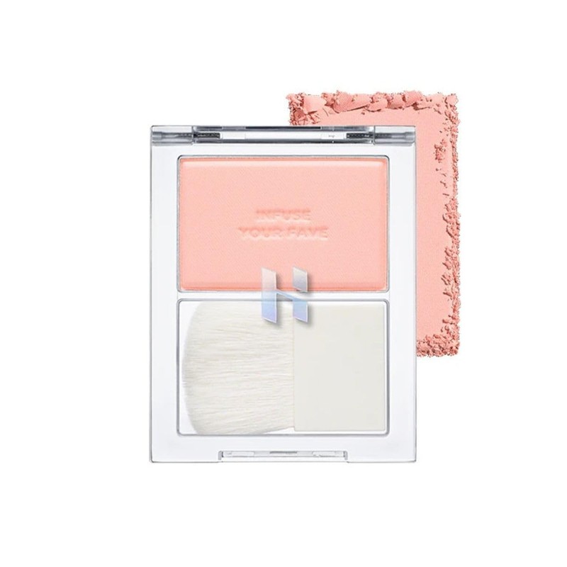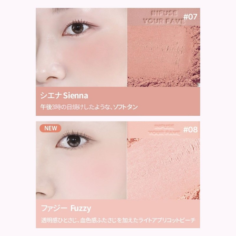 HOLIKA HOLIKA My Fave Infusion Blush (08 Fuzzy) Ruddy Mineral Powder, Pore Cover, Brush Included, Pink Color, Luster, Pearl, Transparent, Smooth Skin