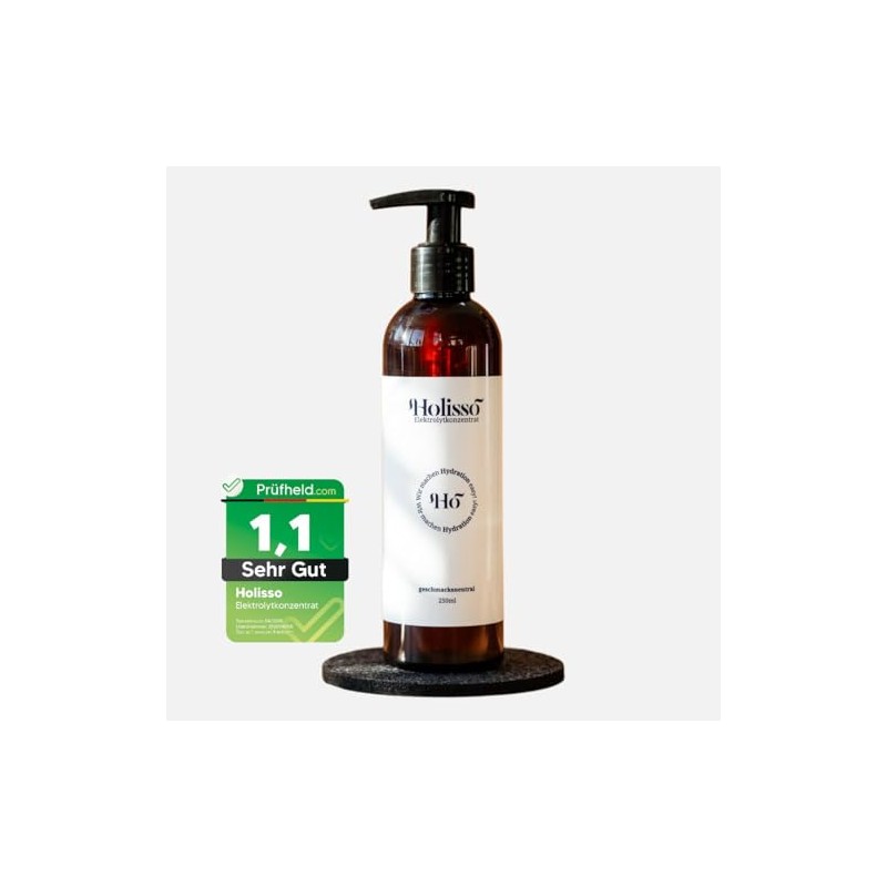Die hochkonzentrierte Formel versorgt dich mit allen essenziellen Elektrolyten wie Magnesium, Kalium, Calcium, Natrium und Chlorid – für mehr Energie, Fokus und Wohlbefinden im Alltag. Holisso wurde gemeinsam mit Expert:innen entwickelt und ist in der EU hergestellt. Eine Flasche reicht für über 200 Portionen – und macht Schluss mit Einwegpulvern, Zusatzstoffen und Verpackungsmüll.