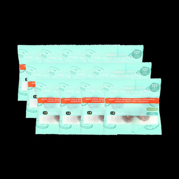 Tropical Bites are your passport to a sunshine snack experience. These delightful bites are made from a blend of banana, mango, pineapple, passion fruit and coconut, giving you a taste of the tropics in every bite.