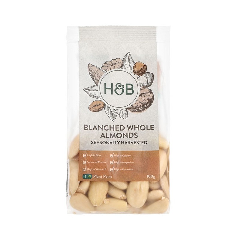 Holland & Barrett Blanched Whole Almonds provide an excellent source of protein and fibre. These blanched whole almonds are seasonally harvested and are perfect for snacking, blitzing, or baking.