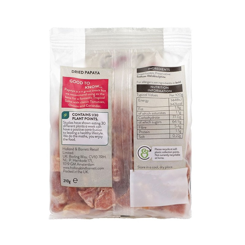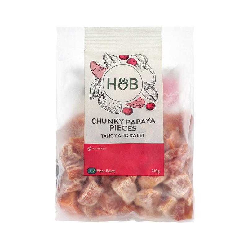 Holland & Barrett Chunky Papaya Pieces are chewy and delicious, tangy and sweet - great for snacking.
