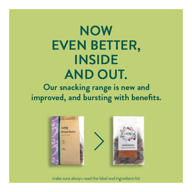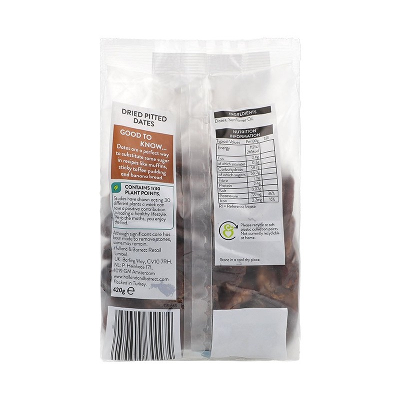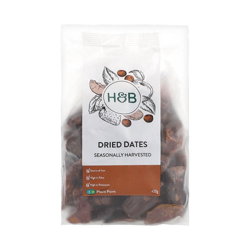 Holland & Barrett Dried Dates are high in fibre and potassium. Whether you use these in your bakes or just for snacking, give them a try! Our dried dates are seasonally harvested too.