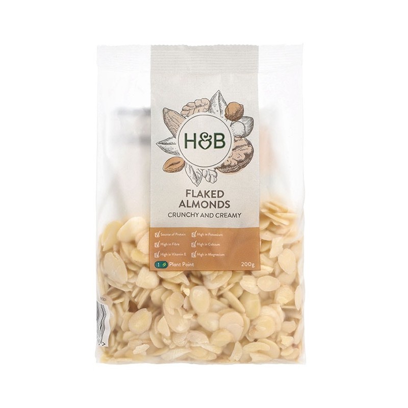 Holland & Barrett flaked almonds provide a source of protein and fibre. These crunchy and creamy flaked almonds are great for sprinkling over salads and for decorating tasty bakes with.