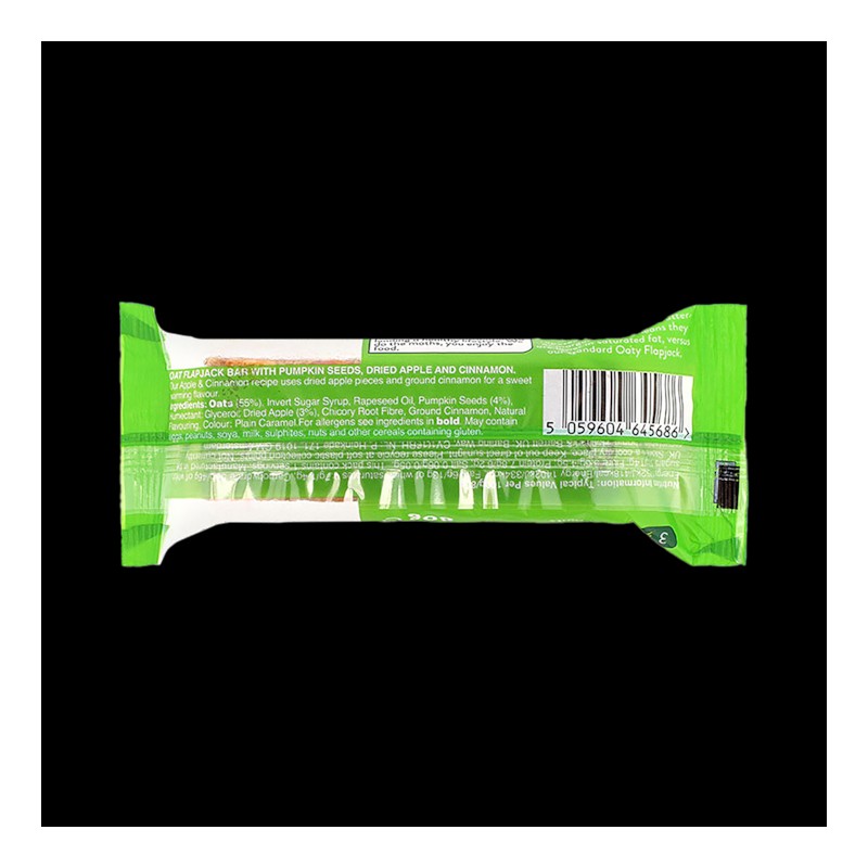 Made with over 50% oats and with added pumpkin seeds, dried apple pieces, and chicory root – this flapjack provides a helpful source of fibre. And, if that’s not all, it is made with rapeseed oil instead of butter or margarine, which cuts down on saturated fat by 72% versus our standard Oaty Flapjack. – making this an all round healthier choice when compared to traditional recipes.