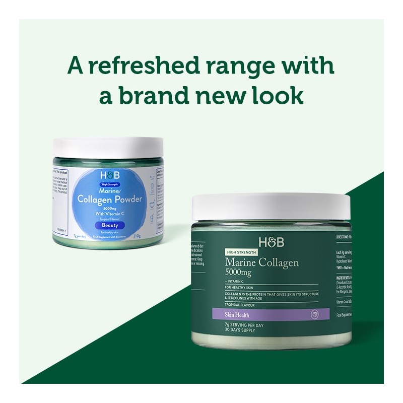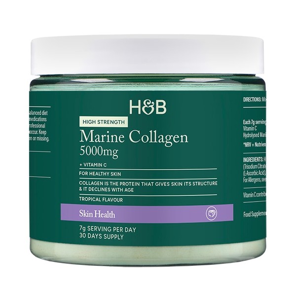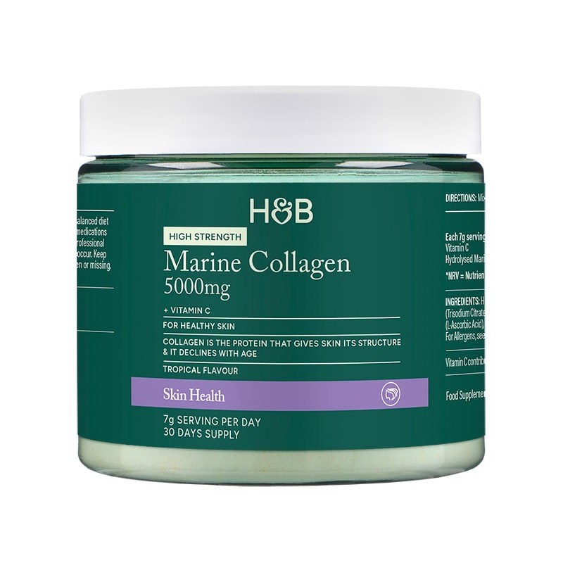 • Alongside high-quality marine collagen, Holland & Barrett Marine Collagen Tropical Powder also contains Vitamin C. Vitamin C, also known as ascorbic acid, contributes to normal collagen formation. This in turn supports the normal function of the skin.