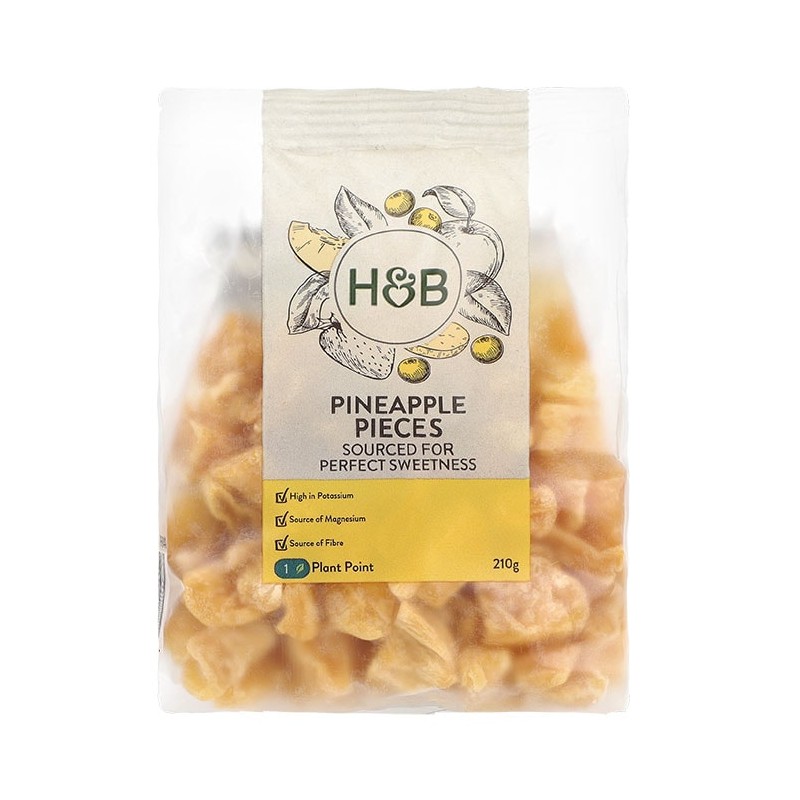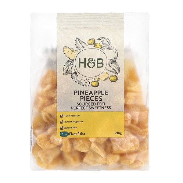Holland & Barrett Pineapple Pieces have been sourced for perfect sweetness. Chewy, fruity and delicious, these pineapple pieces are great for snacking.