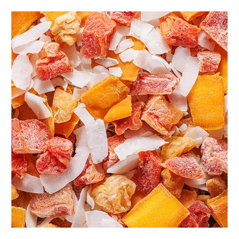 Our mix of tropical dried fruit is great to graze on any time of the day. Try adding it to your cereal or homemade flapjack for an exotic flavour twist.