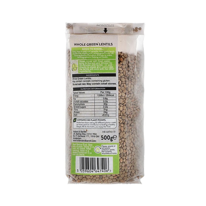 Holland & Barrett Whole Green Lentils