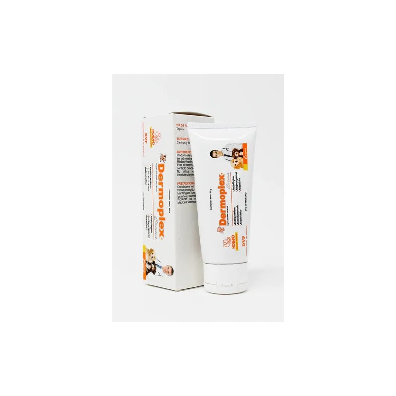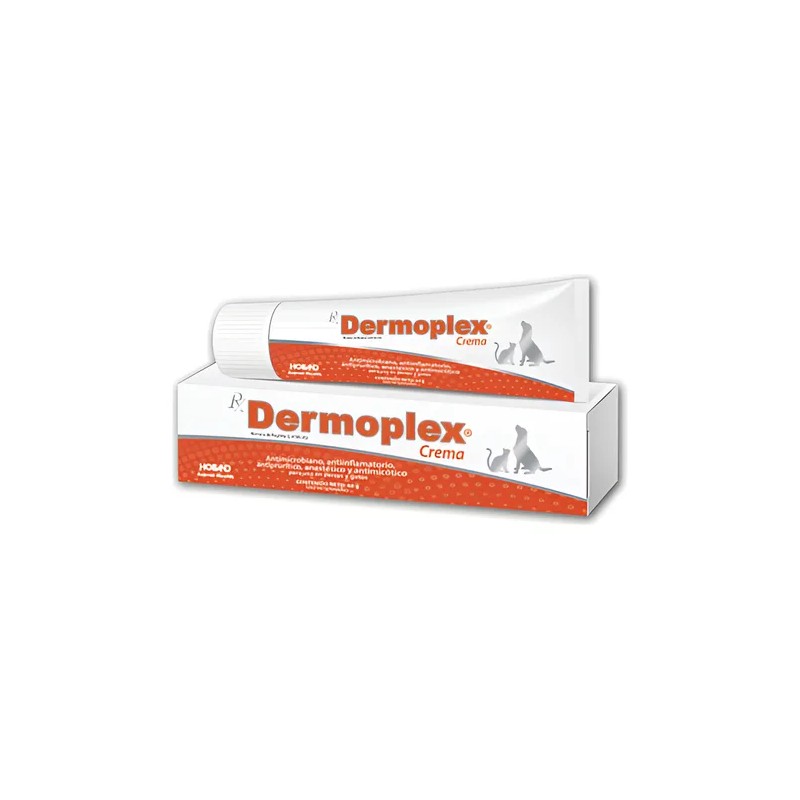 Dermoplex de Holland es una crema tópica de uso veterinario con propiedades antimicrobianas, antiinflamatorias, antifúngicas, anestésicas y cicatrizantes, formulada para tratar diversas afecciones cutáneas en perros y gatos.