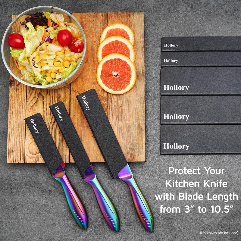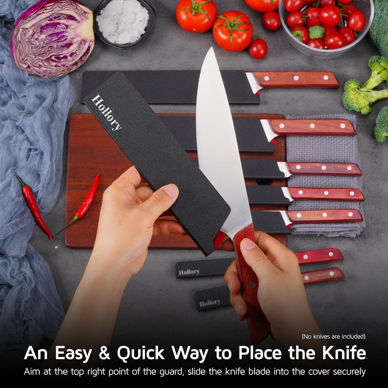 Hollory knife edge guard set,8 Piece Universal Blade Covers,Abs Plastic BPA-Free Blade Protector with Velvet Lining,Professional Kitchen Knife Storage Solution for Home Cooks and Chefs, Black