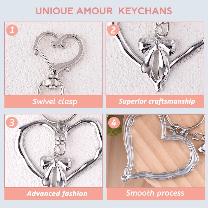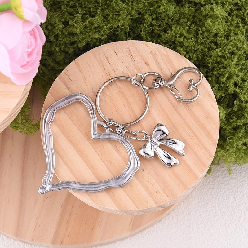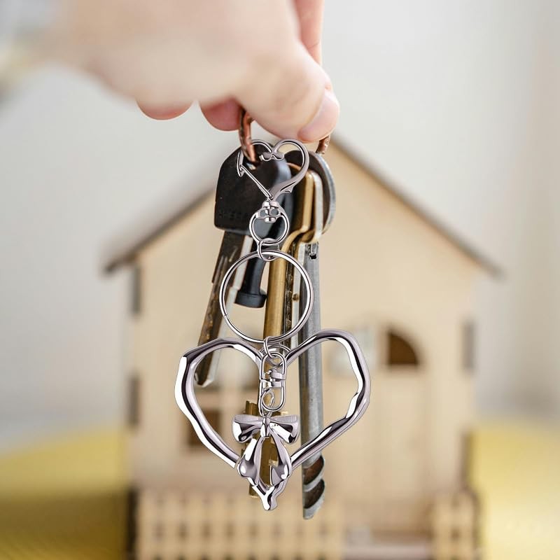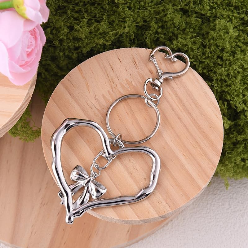 • 1. Silver Metal Hollow Heart Keychain for Women: Featuring a delicate Y2K-inspired bow ribbon charm, this heart key ring adds a touch of vintage glam, making it the perfect aesthetic keychain for women, A must-have for those who love Y2K fashion, kawaii accessories, and minimalist jewelry