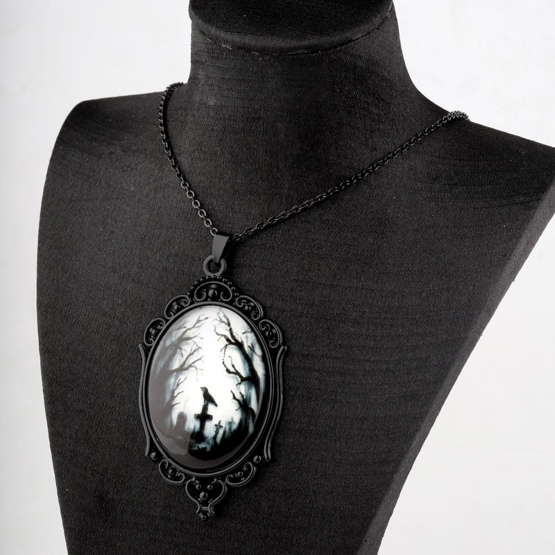 HOLLP Gothic Crow Cross Black Necklace Raven Cross Glass Pendant Necklace Gothic Dark Style Jewelry Crow Cross Necklace (Necklace)