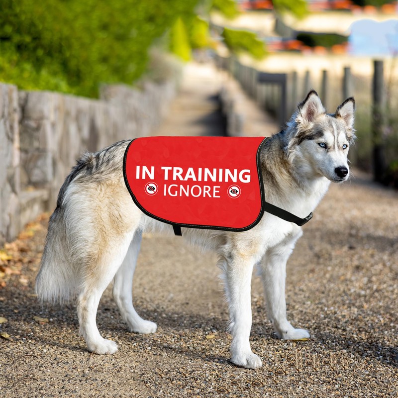 - The printed message on our dog jacket vest is:''IN TRAINING IGNORE'',Different slogans can convey different information to others, which is a warm behavior.