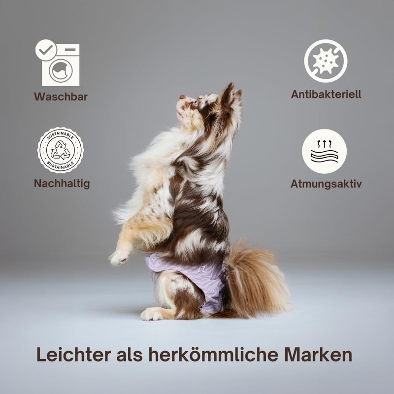 Holly Female Dog Heat Pants (Pack of 2) - Reusable, Oeko-Tex Certified Cotton Nappies - Dog Nappies with Adjustable Velcro Fastener
