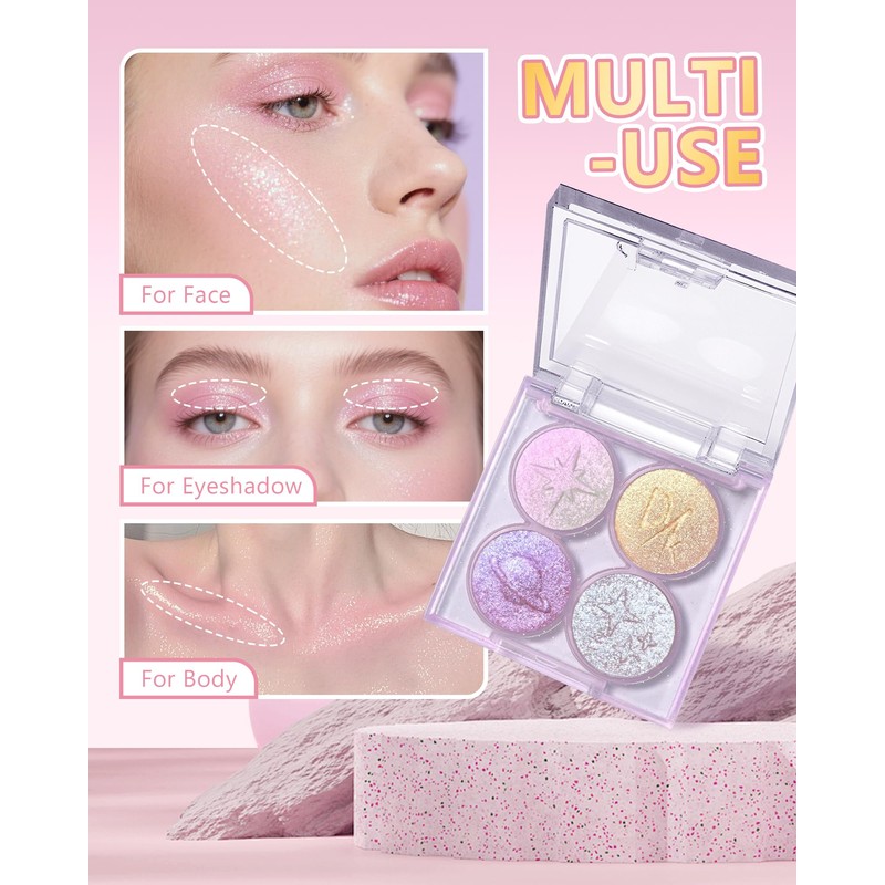 - Four-Color Holographic Eyeshadow Palette - This eyeshadow palette contains four shades suitable for all skin tones and eye colors. The smooth texture is easy to apply and creates a highly moldable makeup effect. The colors change dramatically depending on the angle, taking your eye makeup to a whole new level.