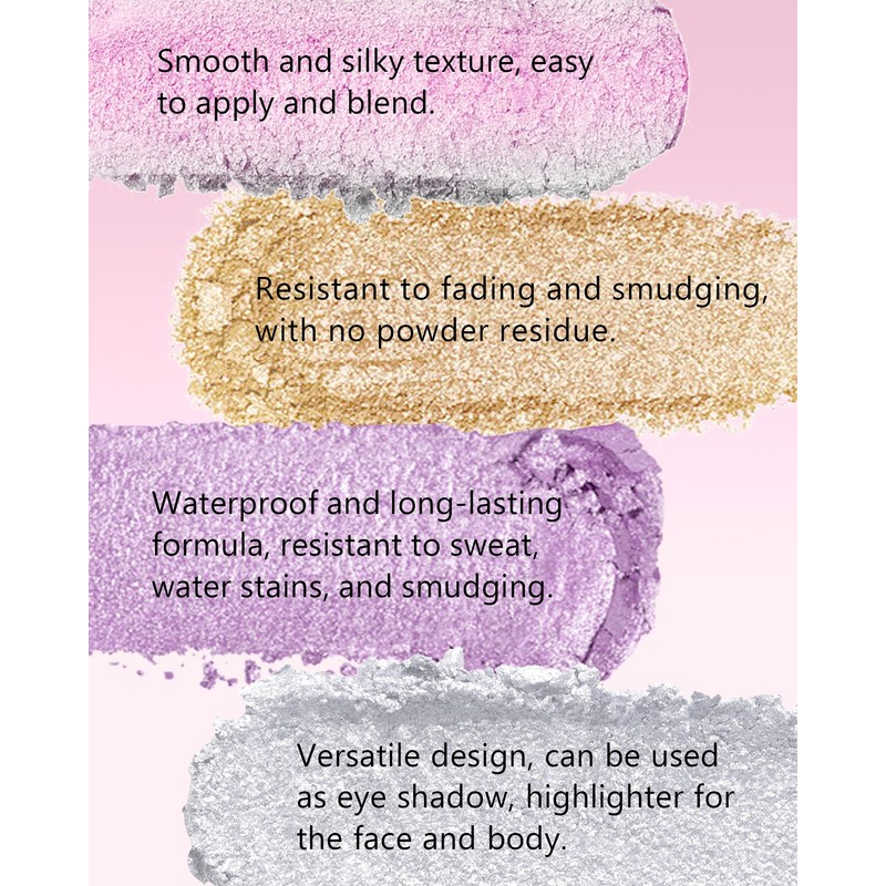 - Multiple Uses - Not only can it be used as a sparkling eyeshadow, but it can also be used as a highlighter for the face and body, adding radiance to any part of the body. Its ultra-sparkling effect will help you unleash your charm.