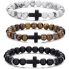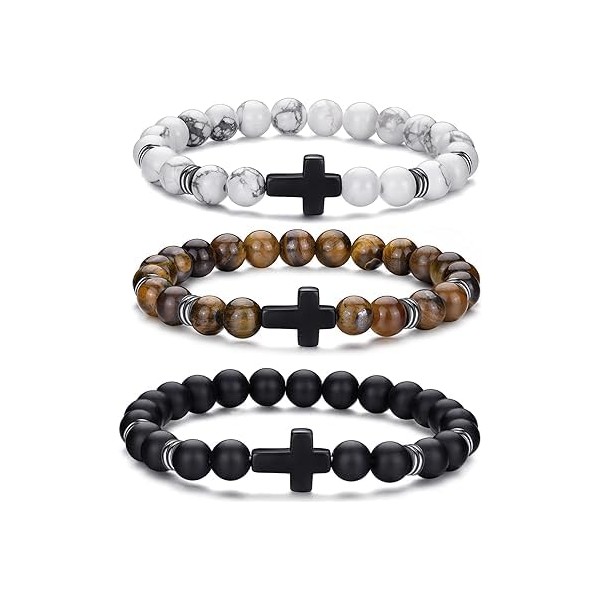 HOLSTRENGTH 3-Pack Beaded Cross Wristband (Matte Black/Marble White/Glossy Brown)