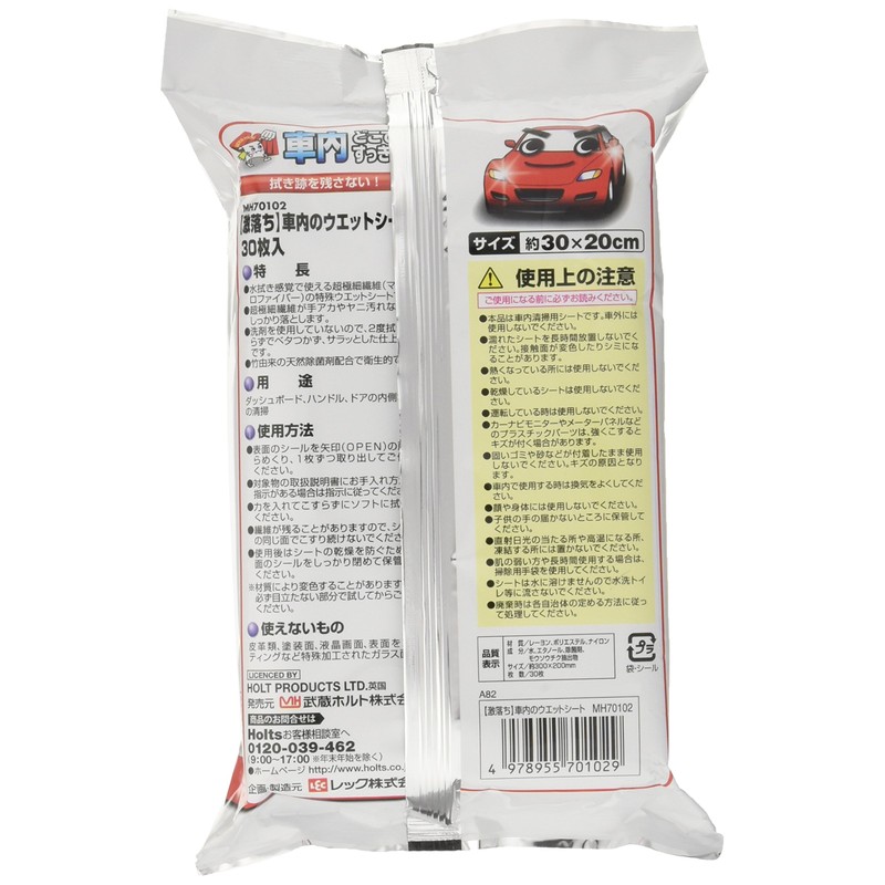 Holts MH70102 Car Wet Seat, Gekochi-kun, Car Wet Sheet, 30 Sheets