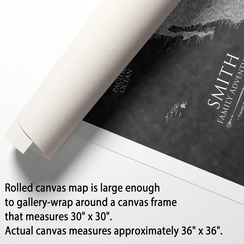 - LIGHTWEIGHT READY-TO-HANG OPTIONS AVAILABLE so you can start pinning your travels right away (Framed or Gallery-Wrapped). Or choose a Rolled map that you can finish off however you'd like. See the listing photos for examples of each. All our maps are proudly HANDMADE IN THE USA.