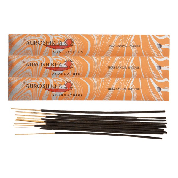- Auroshikha Marbling ~ Holy Sandal ~ A smooth, woody and earthy scent that has strong ties to spirituality and meditation. ***** Now also available as multipacks for a better value *****Incense made by Auroshikha is regarded as some of the finest incense in the world. Auroshikha has captured the light, delicate fragrances of nature, lovingly made at the Sri Aurobindo Ashram in Pondicherry.