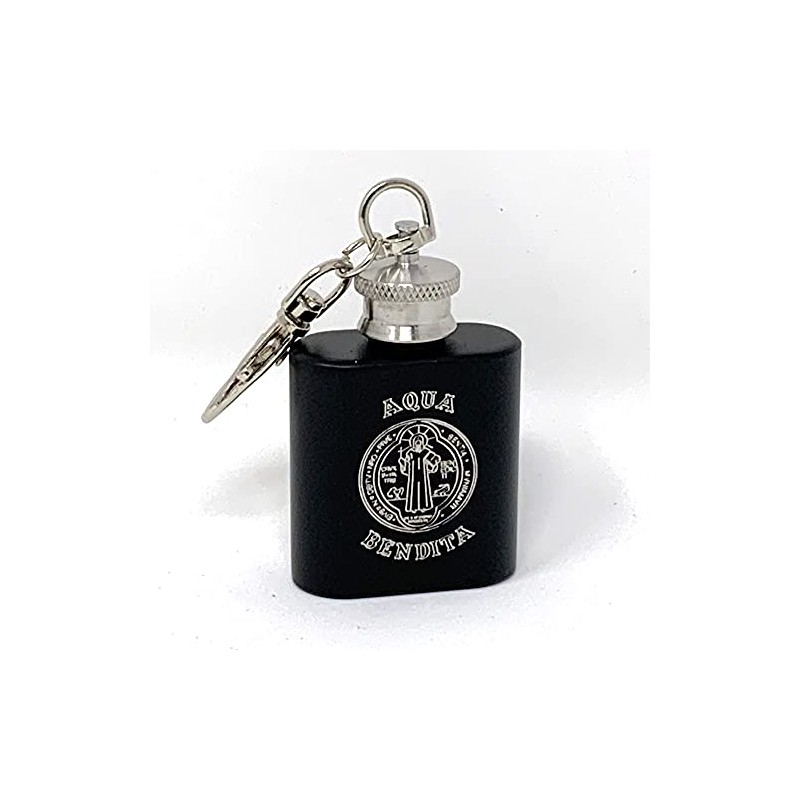 Holy Water Bottle Stainless St Benedict - Spanish - BLACK