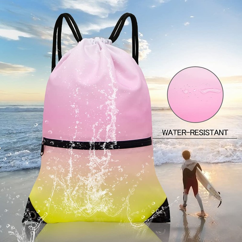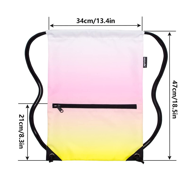 HOLYLUCK Drawstring Backpack Bag Sport Gym Sackpack, Gradient Yellow Pink,