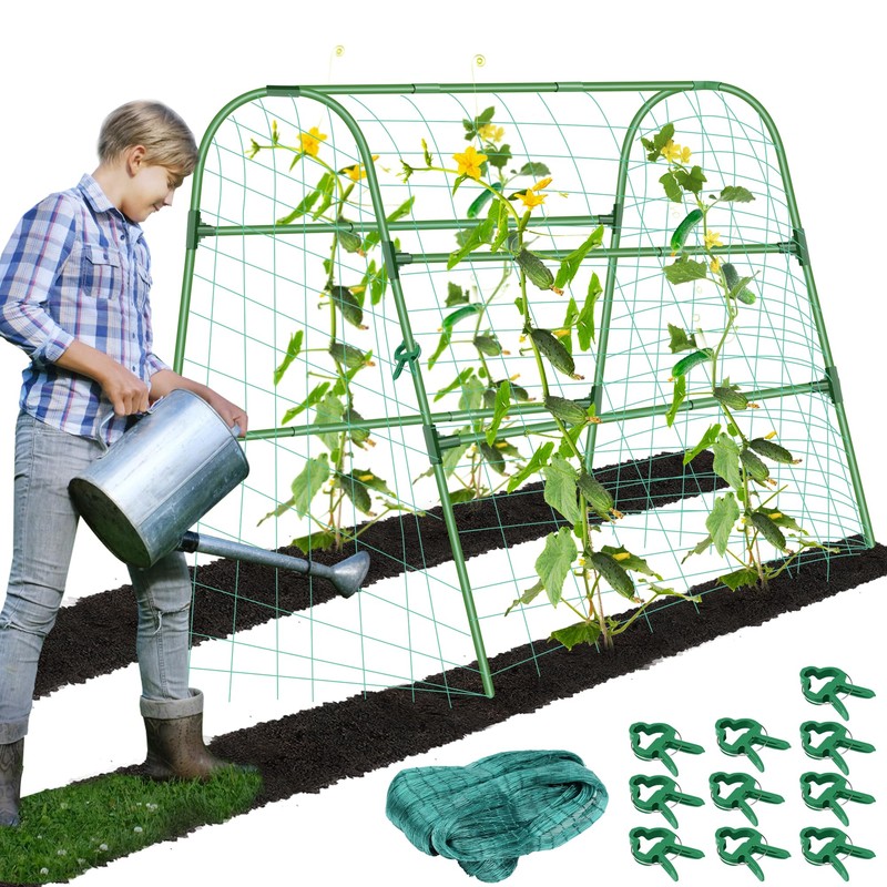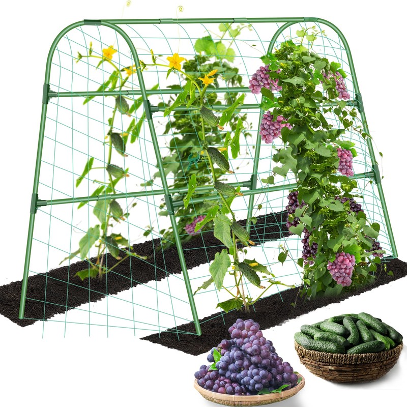 • More stable and with better air circulation than traditional A-frames, the U-shaped cucumber trellis provides a stable surface for climbing plants, maximizes the use of garden space, and provides a good growing environment for plants.