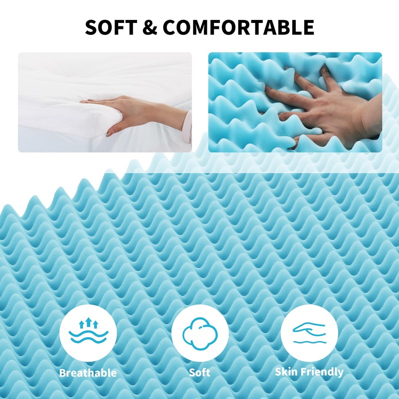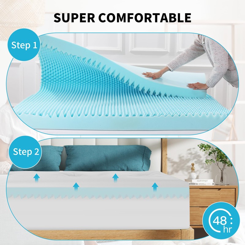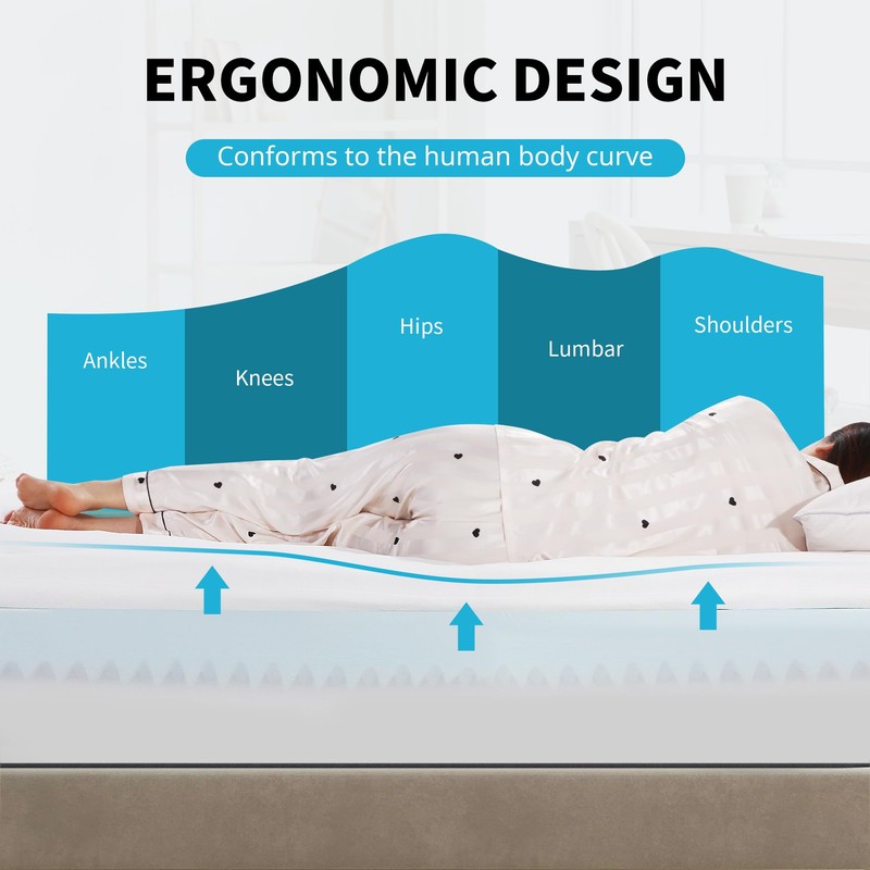 - 【Pressure Relief Structure】:King memory foam mattress topper easily conforms to your body's curves and shape, evenly distributes weight, reduces body pressure and effectively improves sleep quality. The slow rebound feature of the memory foam helps relieve pain and keep your spine naturally aligned. The double mattress topper has just the right amount of support so you don't have to worry about the mattress being too soft or too firm