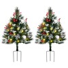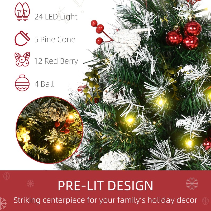 HOMCOM 2.5ft Outdoor Prelit Artificial Christmas Trees Set of 2, Battery Operated with LED Lights and Ornaments - Green