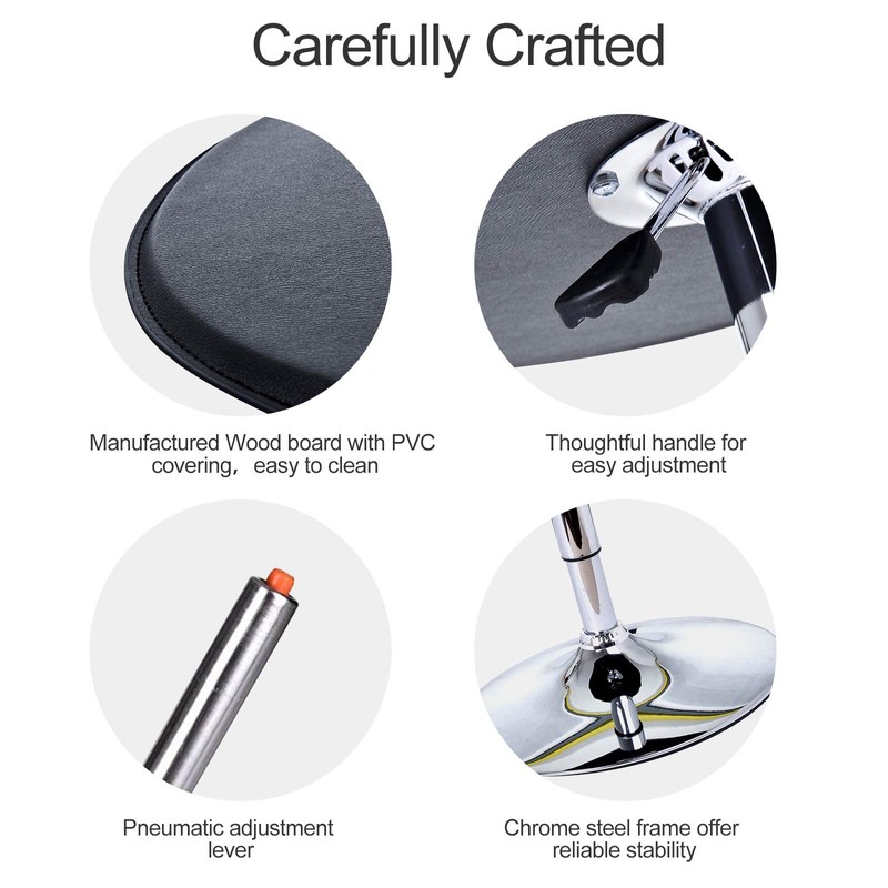 • STEEL CHROME BASE: The black, textured faux leather is offset by the clean, reflective lines of the smooth steel chrome base that is flared just enough to help keep the table balanced and upright without taking up too much floorspace.