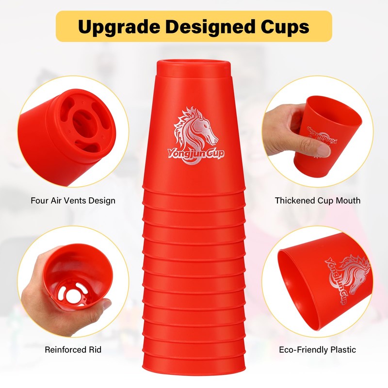 • THREE AIR HOLES Our stacking cup has 3 small vents at the bottom, which can accelerate the air escape to reduce friction when stacking quickly and help you compete with others from a vantage point