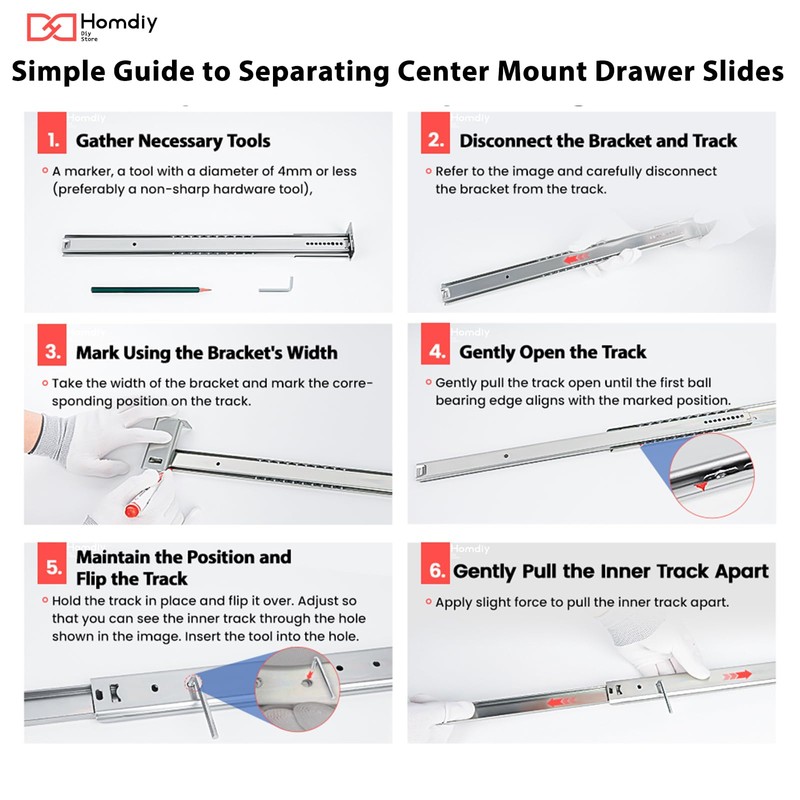 • Great After-Sale Service: Homdiy focus on quality and after-service. If you find any quality problem on our center mounted drawer slides, please feel free to contact us, we promise solve it until you are satisfied.