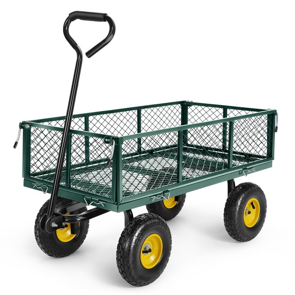 Homdox MAX 680LB Garden Cart, Heavy Duty Garden Wagon, Mesh Foldable Garden Cart, Pullable Garden Wagon with 180ยฐ Rotating Handle, Collapsible Garden Cart for Yard Garden Beach Farm, 10 Inches Tires