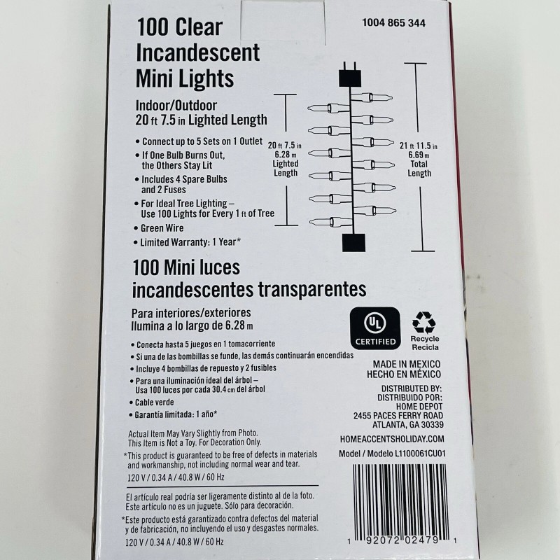 Home Accents 100 Count Clear Mini 20 FT String Lights Indoor Outdoor Green Wire