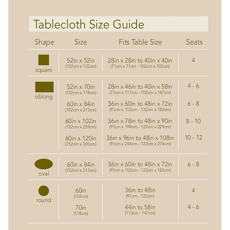 - SIZING: 52" x 70" Oblong / Rectangle (132 x 178cm) - Fits tables from 28 Inch x 46 Inch to 40 Inch x 54 Inch and Seats 4 to 6 People - Rectangle/Oblong