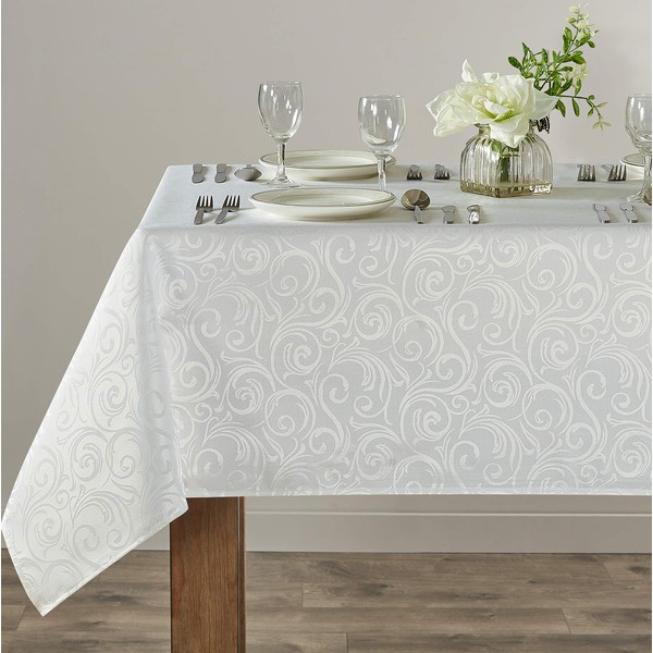 Home Beyond & HB design - 60 x 84 Inch Jacquard Rectangular Tablecloth, Waterproof Spillproof Wrinkle Resistant Polyester Table Cover Protector, White