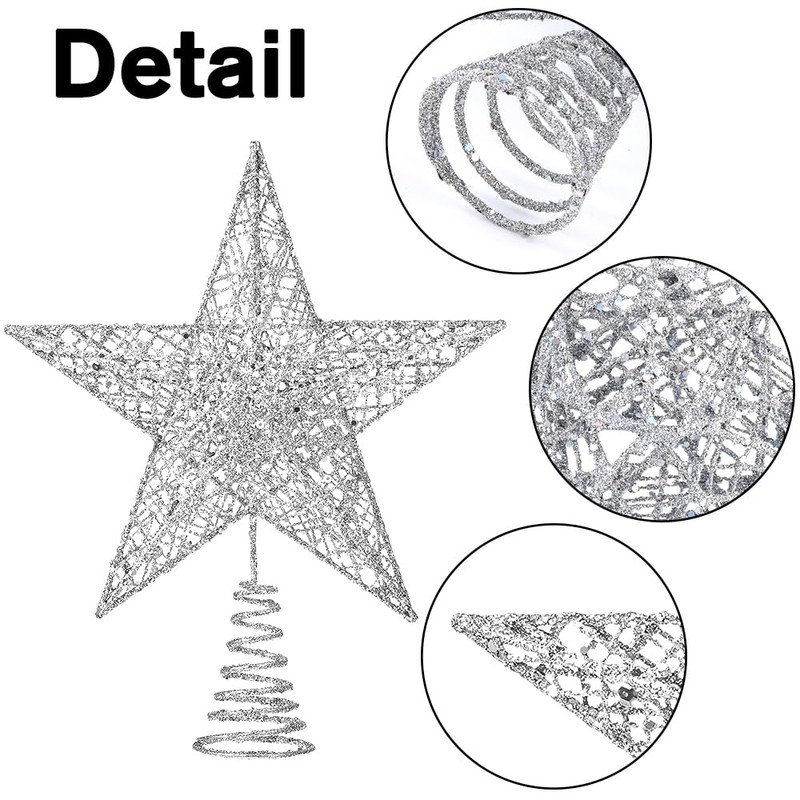 Christmas Tree Toppers Xmas Glitter silver Hollow Star Treetop Topper for Christmas Tree Decoration