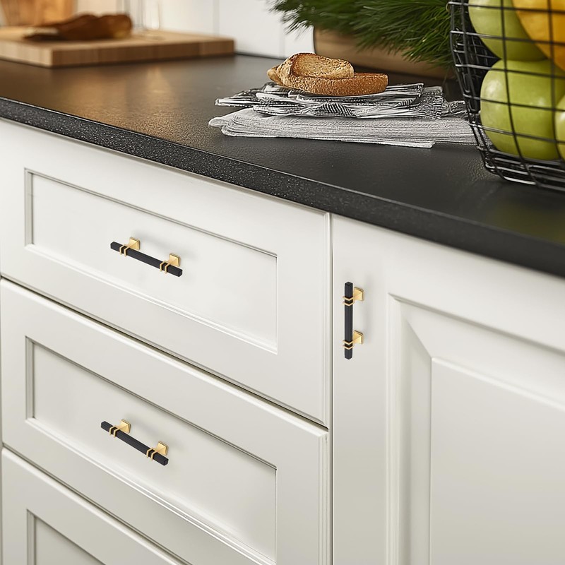 - Widely Compatible:Modern Black and Gold handles are suitable for kitchen cabinets, cupboards, dressers, closets, wardrobes, and wooden furniture. They resist corrosion, wear, fading, and rust