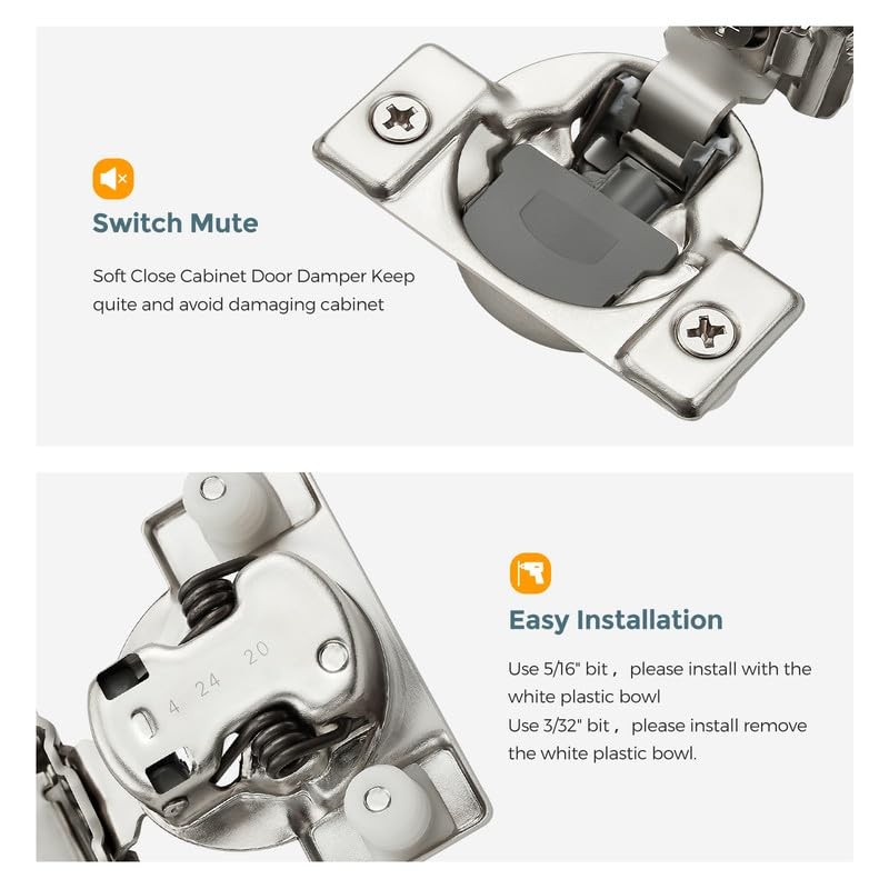 - Three-Way Adjustable: Easy to install and adjust with a screwdriver, ensuring cabinet doors do not sag, maintaining proper alignment and smooth operation.