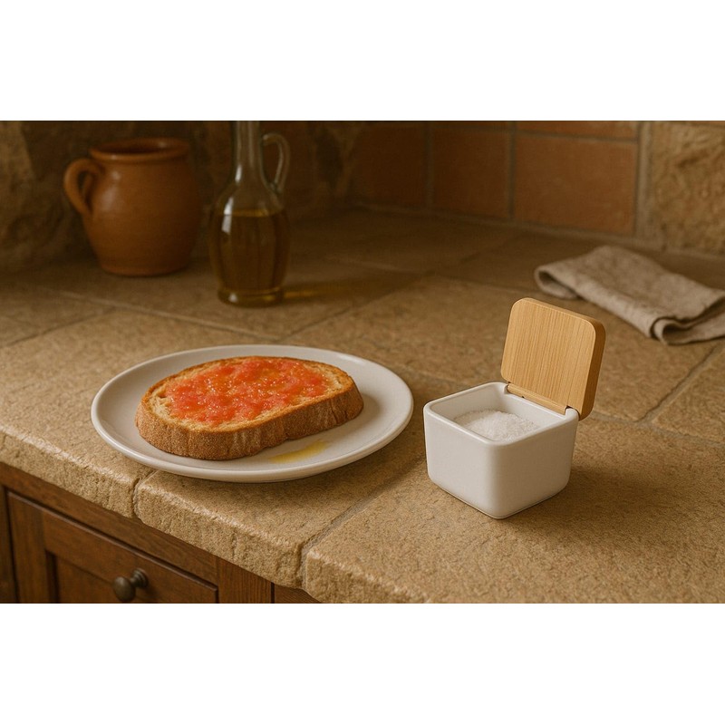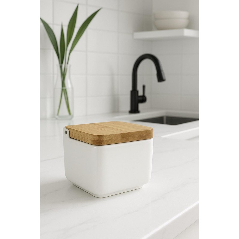 Home Gadgets Salt Pot with Bamboo Lid Ceramic White 12 cm