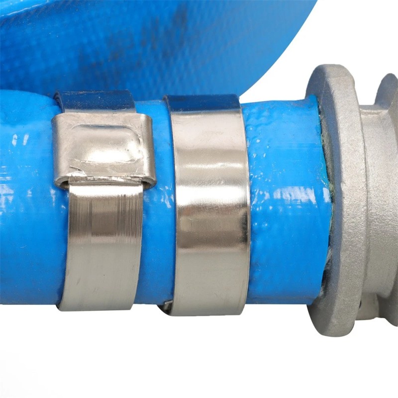 - No leak or burst. Pump discharge hose is molded by extruder and reinforced with polyester yarn. The pin-lug fittings are fixed by stainless steel clamps, and there is no leakage or burst within the 90 psi working pressure, sturdy and durable.