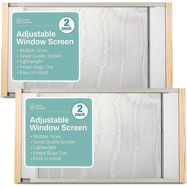 The Home Intuition Expanding Window Screens is durable, lightweight, and super easy to install. Made from galvanized metal rails and varnished wood ends to ensure a longer lasting product. With no tools required place the mesh screen in the preferred window and expand until secure. To ensure a tight and bug proof seal add a strip of weatherproof strip to the top and bottom giving you a tight seal on any uneven edges and finally close the window. Installation made simple. Save money by turning off the air conditioner and allow fresh air and gentle breezes in while keeping annoying summertime bugs and insects out where they belong. Adjustable screen works best with vertical sliding windows. The fastest and quickest solution to permanent installed screens that cost a fortune to buy, measure and install. Buy one today and feel confident with our 2 year limited manufacture warranty!