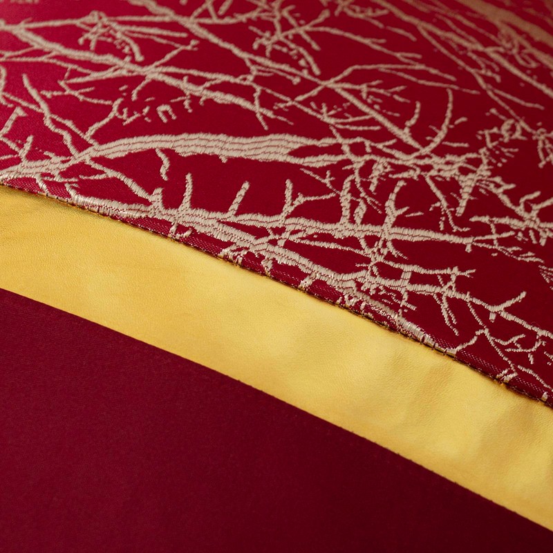 Home Luxe Premium Quality Comfortable Pillow Covers Cushion Covers with High End Embroidery for Couch Cushion Livingroom 17.7 x 17.7 inch (Pack of 2 pcs) (Red Trees with Gold Stripe)